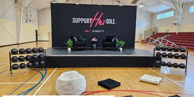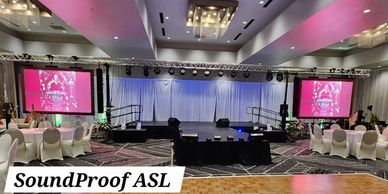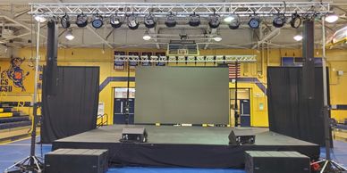 Our experts can provide consulting services to help you optimize your stage for your venue or application. We provided dual led video wall white pipe and drape to meet the client needs for this event.